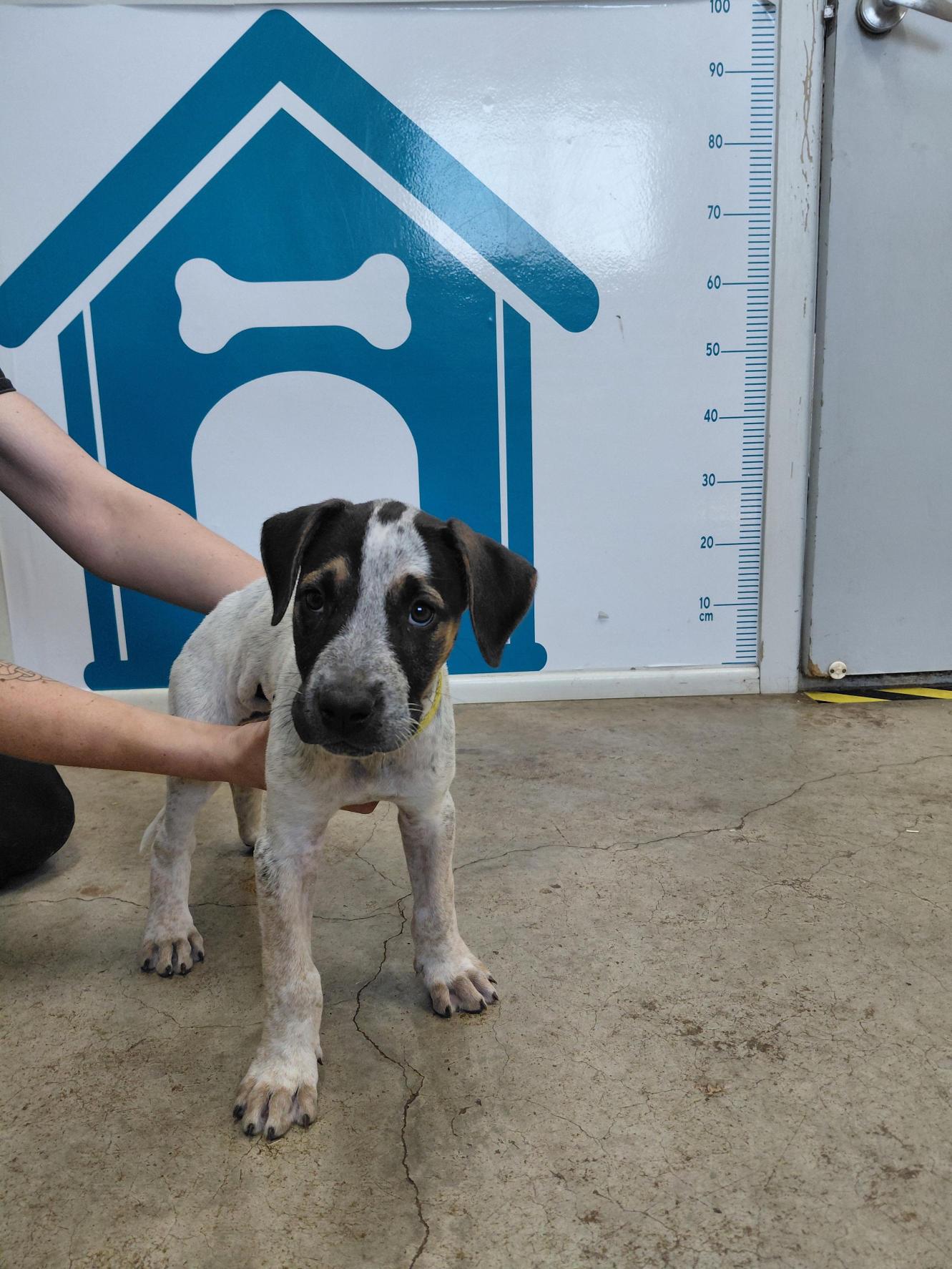 Bear is a 4-month-old puppy. He is very playful and loves to rough house. He loves to vocalize and loves to sit for treats. He gets along well with other dogs.
